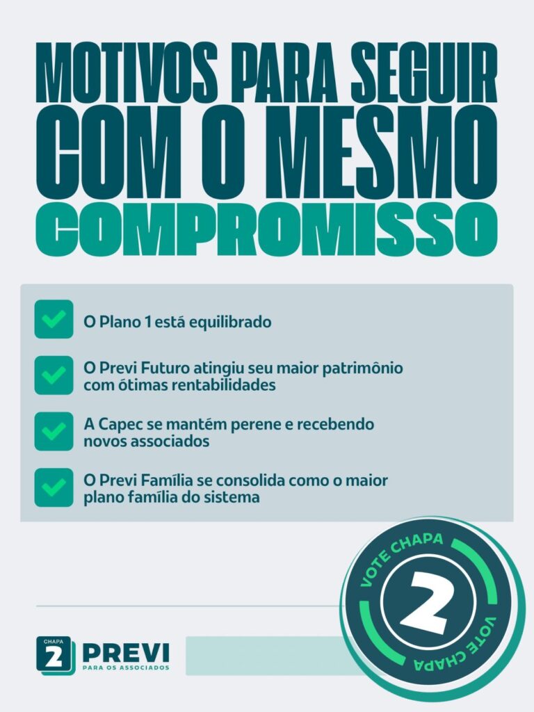 A continuidade do que foi construído é fundamental para que a Previ possa seguir avançando com segurança, sem ações aventureiras e decisões tomadas com falta de experiência, trazendo riscos desnecessários a uma estrutura que funciona e exige responsabilidade permanente.